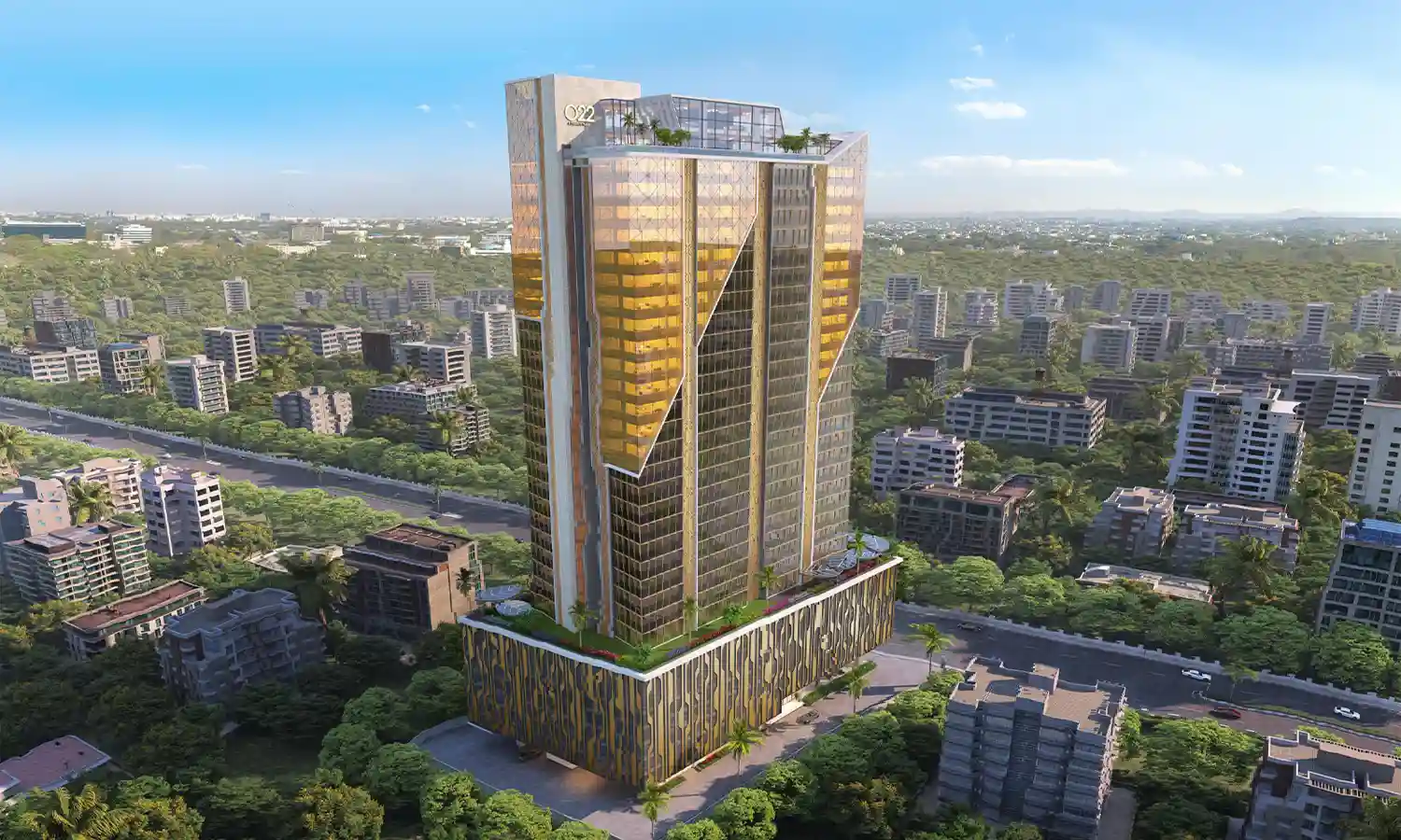 O22 Business Park is an exclusive commercial tower in Wagle Estate, Thane. This artistic landmark offers office spaces of varying carpet area sizes designed to cater to every business’s needs and preferences. With 13 high-speed elevators, including exclusive ones for business owners, movement during rush hours becomes effortless. Apart from that, this commercial address also offers a grand triple-height entrance lobby, a conference room, a VIP waiting lounge, a rooftop restaurant, a multi-level car parking space, and a wide driveway.